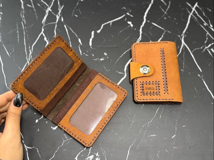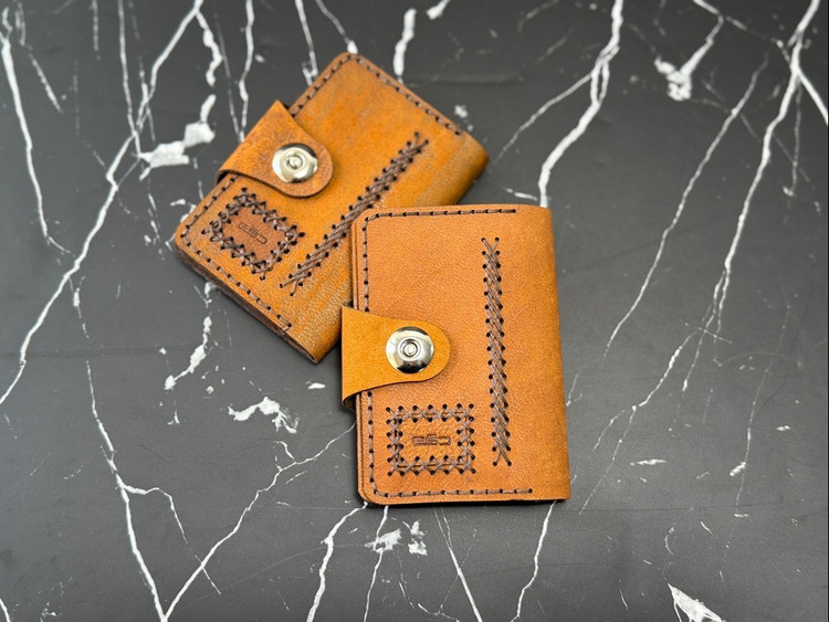 جاکارتی ۲ برگ رو دوخت چرم طبیعی ، کیف پولی است با رنگ عسلی و چرم طبیعی که برای راحتی شما در جابجایی وسایل تان استفاده می شود.