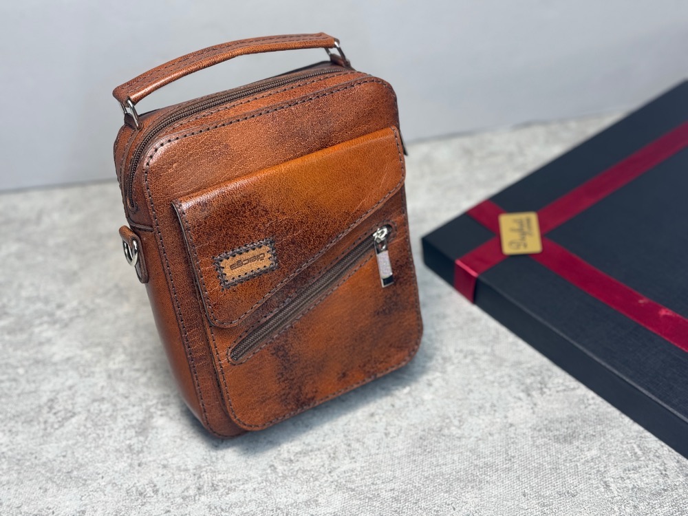 ست دوشی زیپ کج چرم پتینه دقت _ 10016